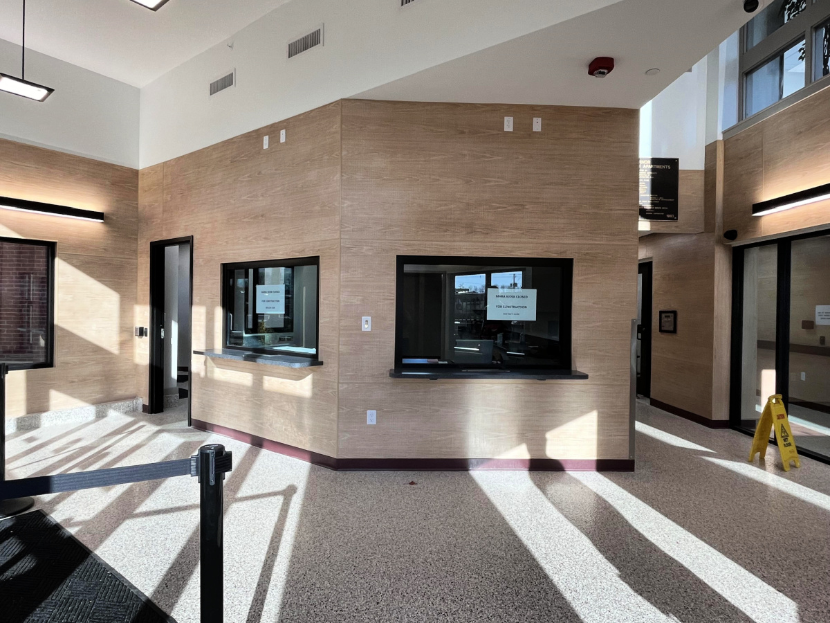 The reception area was revamped with bullet resistance glass windows featuring a natural voice speak through system and the surrounding walls were constructed using bullet resistant panels offering safety from all sides. The area was expanded and equipped with more storage improving work flow and organization for the employees.