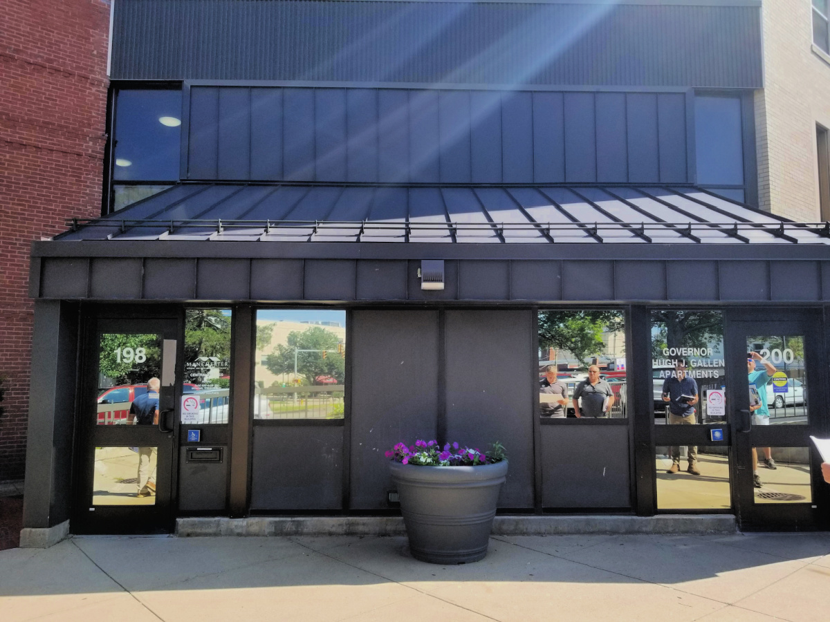 In 2024 D.L. King & Associates completed renovations to the Manchester Housing and Redevelopment Authority (MHRA) vestibule to improve the space functionality and security for the employees. This duel function lobby served as the entrance for the Governor Hugh Gallen Building